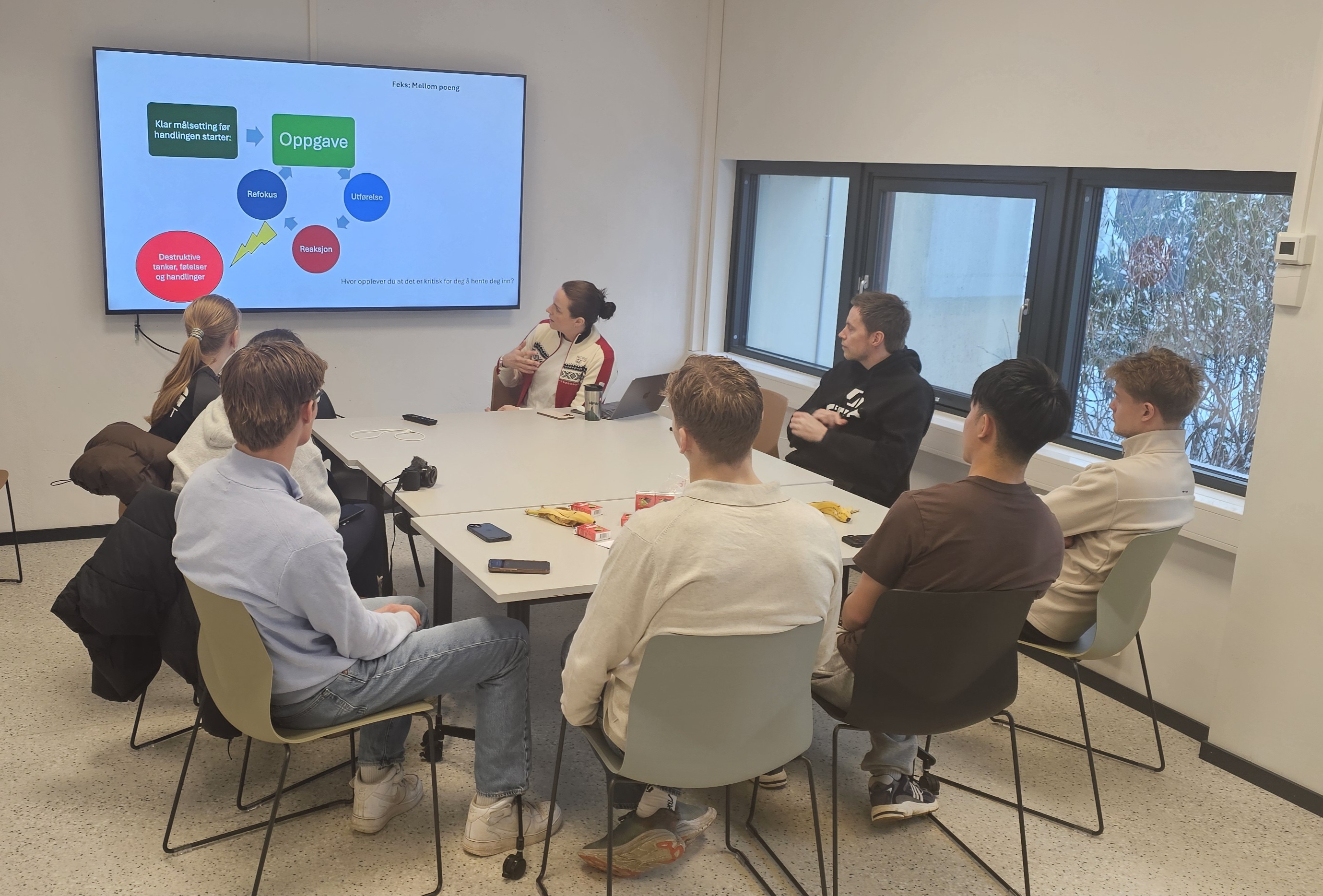 Tirsdag stod bordtennistrening på programmet, med mental trener Fam Lockert fra Olympiatoppen til stede. Etter å ha observert treningsøkten, gjennomførte Fam en egen samling med spillerne der temaene var forventninger, tilstedeværelse og mental forberedelse i trenings- og konkurrasjonshverdagen.