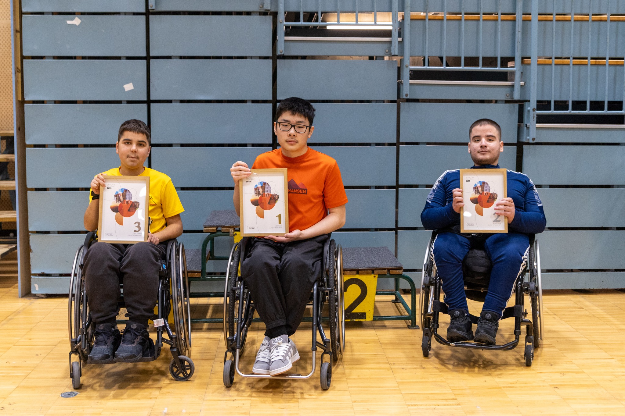Filip Lu Oppheim (Kinsarvik/Harding) vann Jr-Wheelchair føre Emmanuel Ivan (Bergen PIL) og Kosta Uzur (Randesund IF)